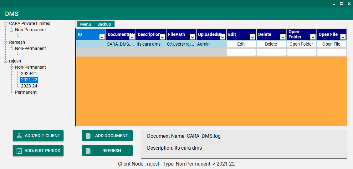 CARA Document Management System is a streamlined solution tailored for chartered accountants to organize and manage client documents effectively. It categorizes files into permanent and periodic types, ensuring quick access and efficient handling of essential records